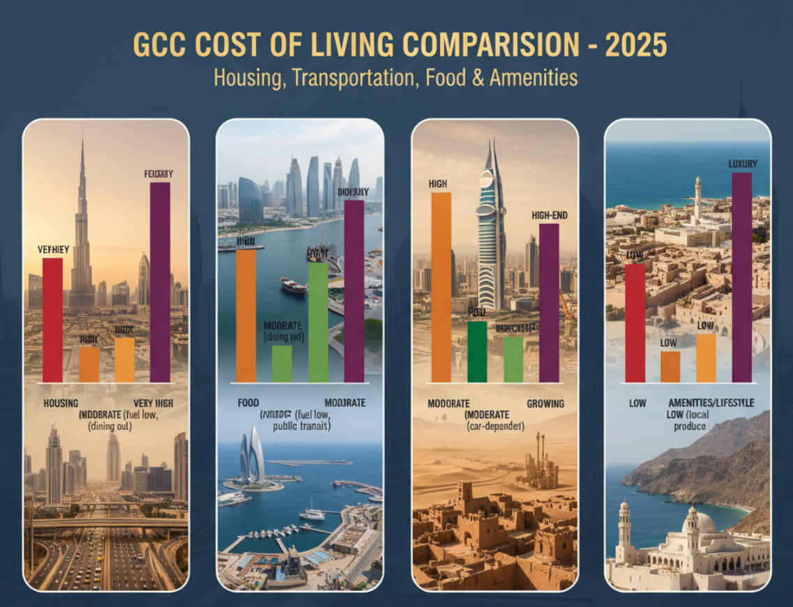 تتفاوت تكاليف المعيشة بشكل كبير بين دول الخليج، وحتى داخل الدولة الواحدة بين المدن الكبرى والمناطق الأخرى. بشكل عام، تُعتبر مدن مثل دبي والدوحة من بين الأغلى، بينما توفر دول أخرى مثل البحرين وعُمان خيارات أكثر اقتصادية. يعتمد هذا التفاوت على عدة عوامل منها قوة الاقتصاد، السياسات الحكومية، وتوفر الخدمات والبنية التحتية.