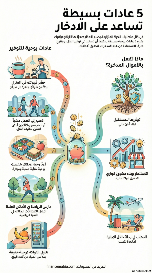 انفوجرافيكانفوجرافيك: 5 عادات بسيطة تساعد على الادخار كتبه FinanceArabia 20 دجنبر 2025 كتبه FinanceArabia 20 دجنبر 2025